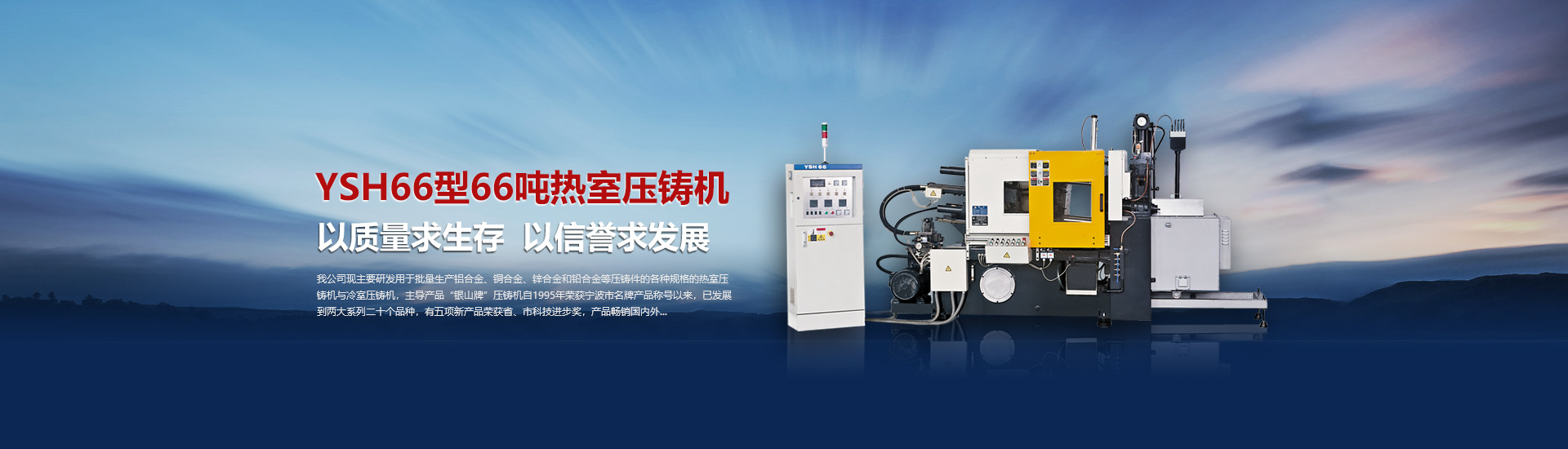 我司現(xiàn)主要研發(fā)用于批量加工生產鋁合金、銅合金、鋅合金和鉛合金等壓鑄件的各種型號規(guī)格的熱室/冷室壓鑄機,主導產品“銀山牌”壓鑄機自1995年榮獲寧波市名牌產品稱號以來,已發(fā)展到兩大系列二十個品種,有五項產品曾榮獲省、市科技進步獎,產品暢銷國內外。歷年來向用戶提供了8000余臺設備,為中國的壓鑄工業(yè)發(fā)展作出了重要的貢獻,企業(yè)獲得了很高的信譽度。